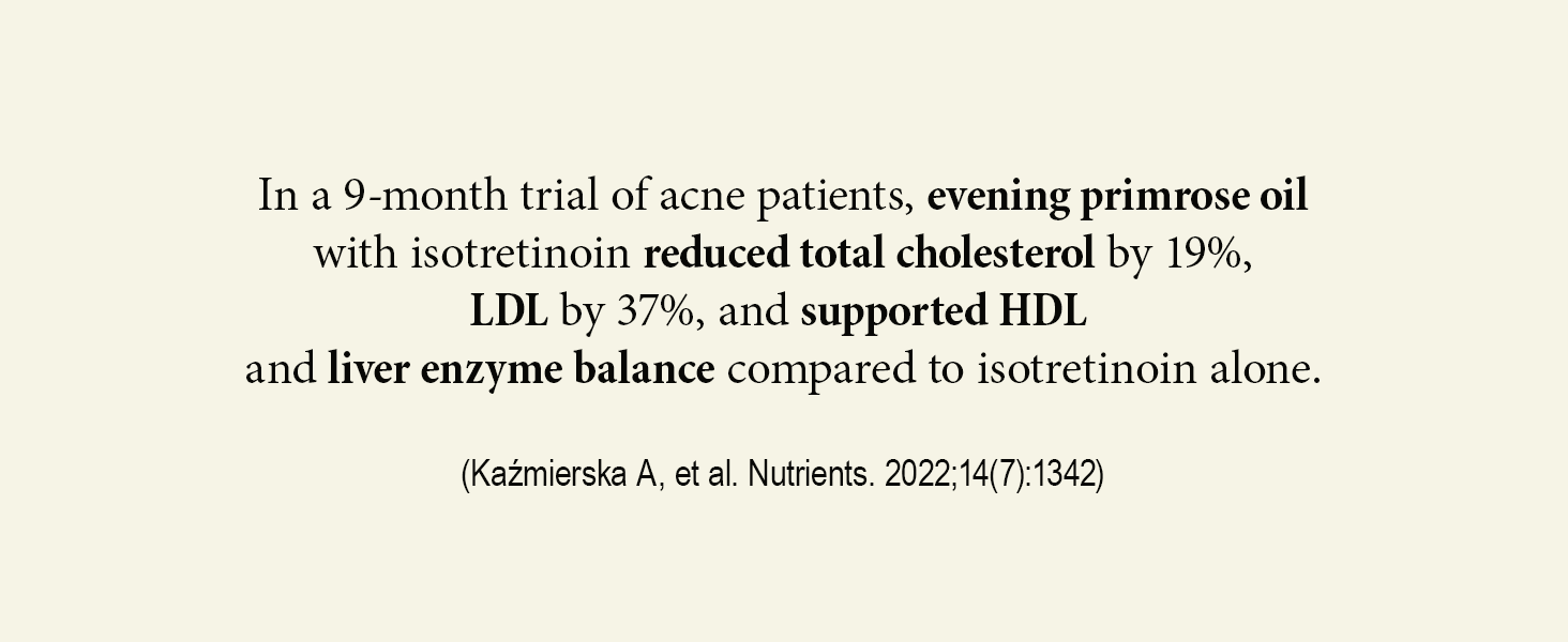 Primrose Oil balances hormones and regulates oil production, preventing excess shine and clogged pores that lead to acne.