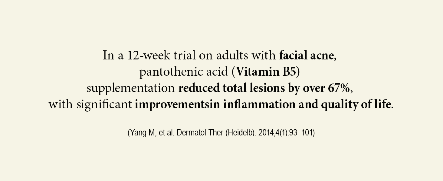 Vitamin B5 regulates oil and maintains hydration, and antioxidants protect against oxidative stress, promoting smoother, healthier skin.